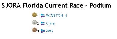 Congratulations to the podium for winning the first in a series of races off the shores of Florida! The results are: WINSTON_4 (ITA) in 41h58m29s - Chila (GBR) in 42h07m06s - zero (BRA) in 42h11m08s!