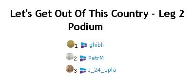 Congratulations to all top finishers and especially to the podium three!! Their results are as follows: ghibli (ITA) 77h28m49s - PetrM (CZE) 77h56m45s - J_24_opla (ITA) 77h59m18s.