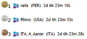 Rafa was first to cross the line in this race with a time of 2d 6h 23m and 10s. Rhino crossed the line only 3 seconds later and ITA_4_Aaron crossed the line only 18 seconds behind Rafa. Well done to the podium and to all other races who sailed this race!