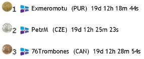 With 19 days 12 hours and 18 minutes Exmeromotu was the first to cross the line. PeterM was across only 7 mintes later, followed by 76Trobones. The top 3 all within 10 minutes after more then 4600nm of sailing. Well done and we will contact Exmeromotu to receive his leg victory prize. Well done to the podium finshers and all others that made it across the line so far!
