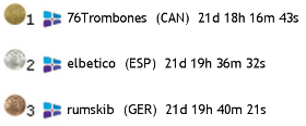 At 08:16:43 utc 76Trombones made it across the line first, with a nice gap to second place. Second across the line was elbetico at 09:36:32 utc closely followed by rumskib only 4 minutes later. Congratulations to this superb sail and we will contact him to receive his SOL mug or Baseballcap!