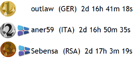 HERZLICHEN GLÜCKWUNSCH outlaw!!! CONGRATULAZIONI aner59!! CONGRATULATIONS Sebensa!