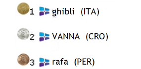 These are the rankings we had at the time of the server trouble, as it was more or less a drag-race at this point we decided to post the results as is. Well done to ghibli who was in the lead at that point, with Vanna and Rafa in second and third.