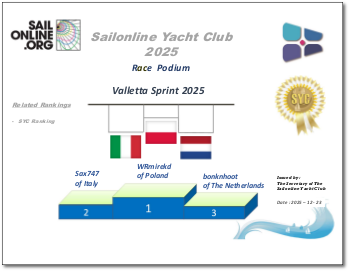 A quick, short report to close off the 2025 Sailonline season on what turned out to be a long, long Valletta Sprint: in fact, as so often more of a marathon. And as so often, it was the first leg crossing from Malta to the Straits of Messina in light to moderate shifting wind that determined the leading positions. How far north to curve on the second leg from Stromboli to Favignana also mattered, but mildly so, and not enough to threaten the lead that WRmirekd had already built up.