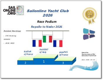 Quite a race then, with first Series blood to Italy's ita10267 (check his report), hotly pursued by a small French squadron of KaSToR and pepsPV5. Lots more racing to follow, including several buddy-ups with famous real-life regattas!