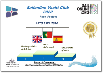 Our podium was hotly contended – just 24s separated 1st from 2nd and a tiny 4s separated 2nd from 3rd – with 23 boats arriving in the 10m after our winner! What a competition, with a new-to-Sailonline ASTO racer, ChallengeWales taking second place. Congratulations to our podium three and many thanks to all of them for making time to write reports for this Results Blog!