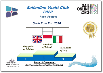 Conventionally the Carib Rum Run is piratical only in the choice of some to change names, but we race a speedy and glamorous yacht. In 2020 our SRC decided that we should go “full pirate” and race a square rigger, so our beautiful Clipper Ships were chosen. Tall Ships are becoming more popular on Sailonline, but even those who love them were dismayed to find sails slackly moving and vessels barely making headway in the lightest of winds from the start – the fleet, flying the flags of 31 different nations, split into three, heading NE, NW and, curiously, ESE in attempts to find elusive breezes. A couple of pick-ups later saw an astonishing break by our eventual winner, WRmirekD, closely followed by Chipspitter (where close is 30nm) while the third podium place went to AL53_SSIta who led a breakaway group far south. The race report from Satori, with its excellent screengrabs, shows just what occurred. Many congratulations to our podium for their impressive success!